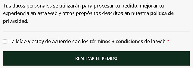 [woodmart_info_box icon_style="with-border" icon_type="text" icon_text_size="small" image_alignment="left" title_font="primary" title_size="large" title_font_weight="400" woodmart_css_id="643dedc16a0e3" icon_border_color="eyJwYXJhbV90eXBlIjoid29vZG1hcnRfY29sb3JwaWNrZXIiLCJjc3NfYXJncyI6eyJib3JkZXItY29sb3IiOlsiIC5pbmZvLWJveC1pY29uIl19LCJzZWxlY3Rvcl9pZCI6IjY0M2RlZGMxNmEwZTMiLCJkYXRhIjp7ImRlc2t0b3AiOiIjMGYyZDFkIn19" icon_border_hover_color="eyJwYXJhbV90eXBlIjoid29vZG1hcnRfY29sb3JwaWNrZXIiLCJjc3NfYXJncyI6eyJib3JkZXItY29sb3IiOlsiOmhvdmVyIC5pbmZvLWJveC1pY29uIl19LCJzZWxlY3Rvcl9pZCI6IjY0M2RlZGMxNmEwZTMiLCJkYXRhIjp7ImRlc2t0b3AiOiIjMGYyZDFkIn19" icon_text="7" icon_text_color="eyJwYXJhbV90eXBlIjoid29vZG1hcnRfY29sb3JwaWNrZXIiLCJjc3NfYXJncyI6eyJjb2xvciI6WyIgLmJveC13aXRoLXRleHQiXX0sInNlbGVjdG9yX2lkIjoiNjQzZGVkYzE2YTBlMyIsImRhdGEiOnsiZGVza3RvcCI6IiMwMDAwMDAifX0=" title="Lee y si estás de acuerdo, acepta los términos y condiciones del website. y luego dale clic en el botón “Realizar el Pedido”" title_color="eyJwYXJhbV90eXBlIjoid29vZG1hcnRfY29sb3JwaWNrZXIiLCJjc3NfYXJncyI6eyJjb2xvciI6WyIgLmluZm8tYm94LXRpdGxlIl19LCJzZWxlY3Rvcl9pZCI6IjY0M2RlZGMxNmEwZTMiLCJkYXRhIjp7ImRlc2t0b3AiOiIjMDAwMDAwIn19" svg_animation="no" info_box_inline="no" responsive_spacing="eyJwYXJhbV90eXBlIjoid29vZG1hcnRfcmVzcG9uc2l2ZV9zcGFjaW5nIiwic2VsZWN0b3JfaWQiOiI2NDNkZWRjMTZhMGUzIiwic2hvcnRjb2RlIjoid29vZG1hcnRfaW5mb19ib3giLCJkYXRhIjp7InRhYmxldCI6e30sIm1vYmlsZSI6e319fQ==" wd_z_index="no" wd_hide_on_desktop="no" wd_hide_on_tablet_landscape="no" wd_hide_on_tablet="no" wd_hide_on_mobile="no"][/woodmart_info_box]