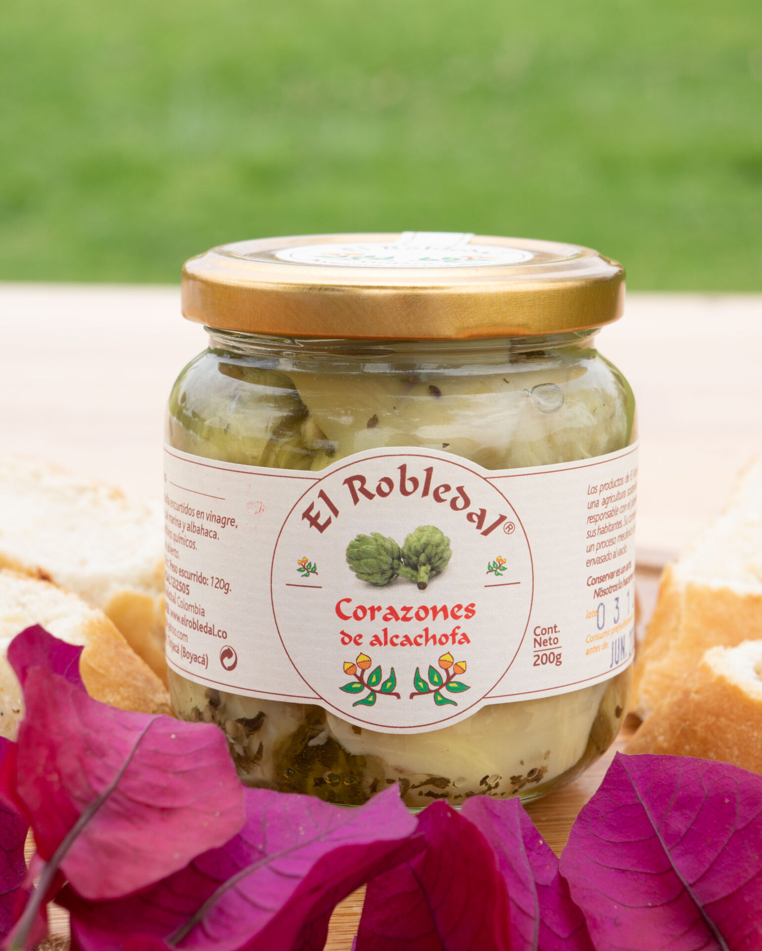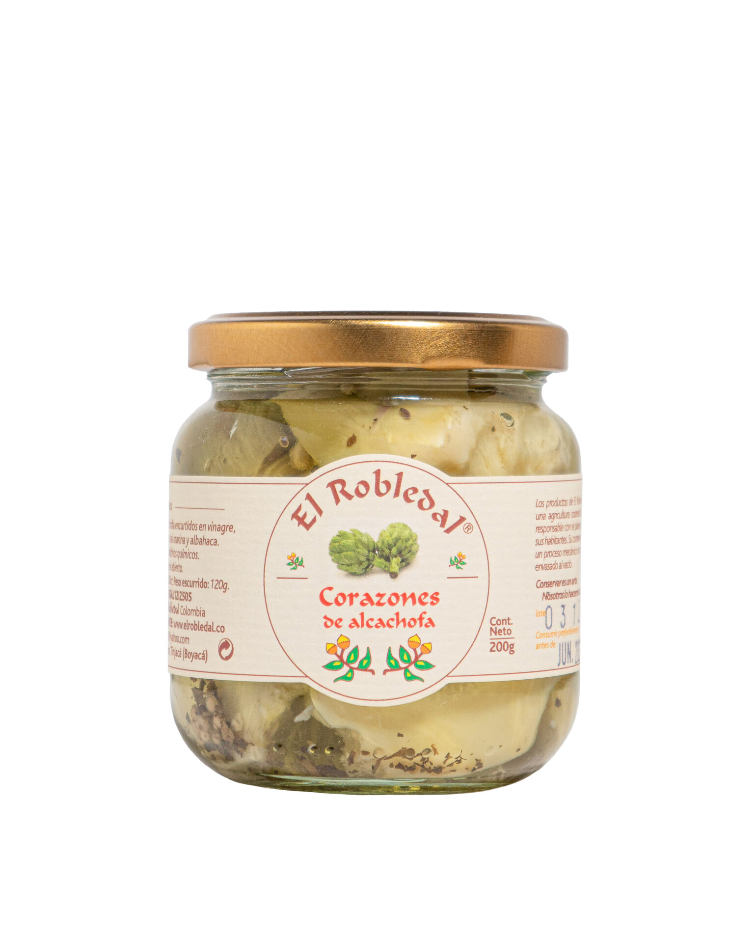 Exquisitos corazones de alcachofa en vinagre, elaborados con aceite de girasol, ajo, sal marina y albahaca. Sin conservantes ni aditivos químicos. Su contenido es de 200 g. Este producto es elaborado por El Robledal