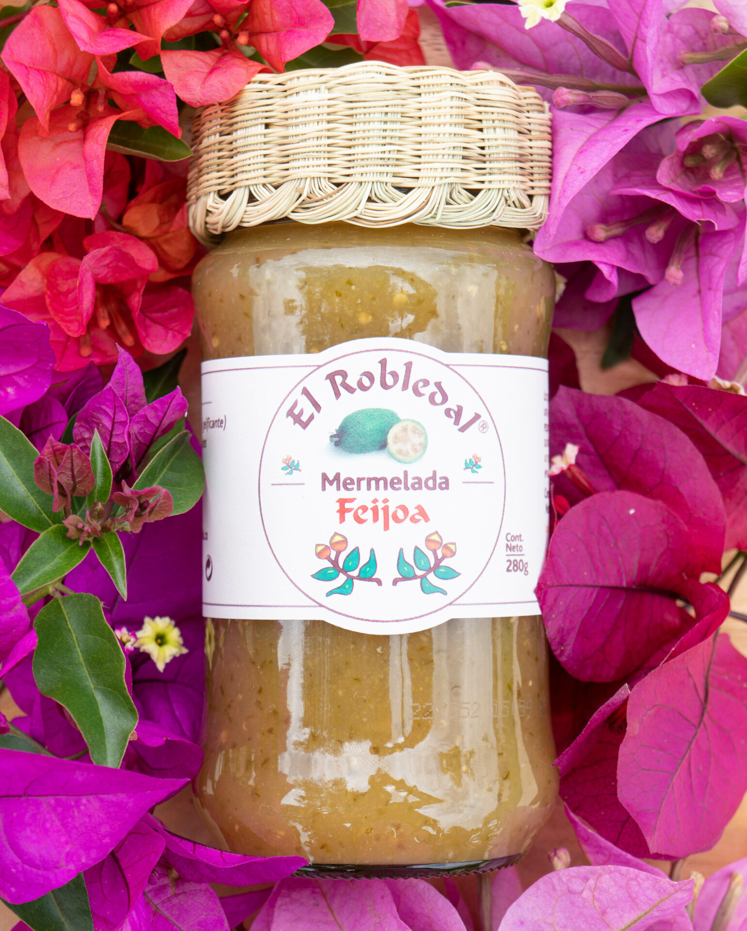 Deliciosa mermelada artesanal de feijoa, su contenido neto es de 280 g. contiene azúcar de caña, pectina (gelificante) y ácido cítrico (acidulante). Sin conservantes químicos.